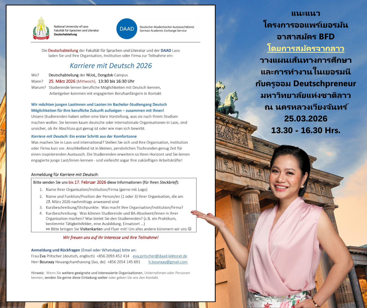 โรงเรียนสอนภาษาเยอรมัน ฝึกอบรมและพัฒนาศักยภาพออแพร์เยอรมันในประเทศไทย ซึ่งดำเนินการดูแลอย่างใกล้ชิดโดย ครูออม (พิทยาภรณ์ ทะโกสา) ที่มีประสบการณ์มากมายในการฝึกฝนเยาวชนชาวไทยและชาวลาวมาหลายปี ให้พร้อมต่อการสมัครเข้าร่วมโครงการออแพร์เยอรมัน การใช้ชีวิตในฐานะออแพร์เยอรมัน รวมถึงแนะแนวเกี่ยวกับเส้นทางการศึกษาและการทำงานในประเทศเยอรมนีหลังจบโครงการออแพร์